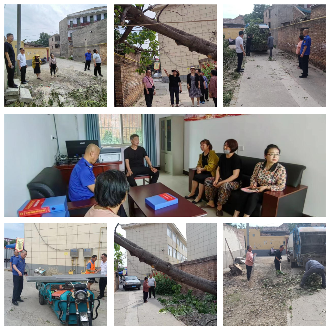 6月12日大清早,韦庄社区火车站小区网格员在巡查中发现一棵大树倾倒,树干和树枝直接砸到旁边一处民房,导致民房出现了一定程度的受损,同时给居民的安全出行带来了安全隐患,她第一时间联系韦庄社区。随后,社区书记董世民就带领社区工作人员第一时间赶到现场查看。当认识到问题的严重性时,董世民立即联系社区人大代表联络站值班代表习红旗,还有正在接待选民的张永超、梁小宇两位人大代表。代表们听闻情况后立刻赶赴现场与社区工作人员进行商讨,经过专业人员现场勘察,给予解决方案。习代表立即联系吊车、伐木工具、技术工人、装运树枝的卡车等一应俱全,同时拉来了石棉瓦,经过几个小时紧急处置,倒塌树木全部处理完毕,将受损的民房全部修补到位。此问题在短时间内得到了圆满解决,让社区干部心中的石头妥妥地落了地,也实实在在解决了群众的当下难题。